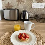 Az ingatlan kényelmes önellátási lehetőségeket kínál, többek között teljesen felszerelt konyhát elektromos vízforralóval, mosogatógéppel és hűtővel. A Briand buszmegálló 100 méterre fekszik.